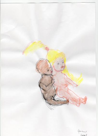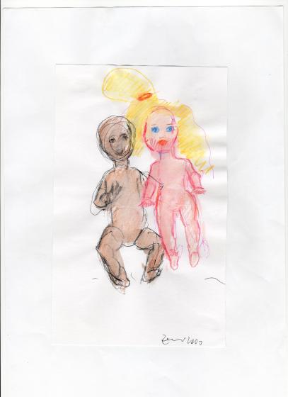 Zenner also produces drawings of popular images like swans, babies, a rosycheeked young girl, ore a young woman. In these drawings she undermines the trivial nature and kitschy quality of her banality. Zenner seems to love her subjects because they are more than just religious or profane, and because taste seems today to be antiquated category of esthetic judgement.