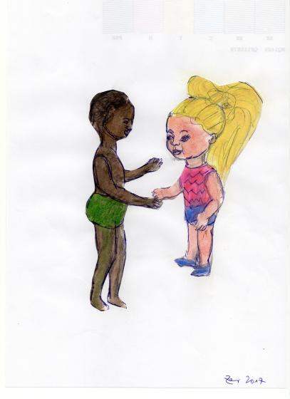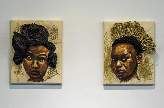 Zwar erinnern sie an Bilder aus Magazinen, an Abziehbilder und Plakatmalerei. Doch die Liebe, mit der sich Zenner ihren Motiven widmet, macht den trivialen Kontext oft vergessen. Mit Nadel und Zwirn stickt sie Portraits, strickt ihren gezeichneten Figuren Hut oder BH an den Körper oder versetzt afrikanische Models vor goldenen Hintergrund. Anbetungswürdige Köpfe, die hier vor pseudoreligiösem Gold eine ideale Schönheit ausstrahlen. Und dann sind es lasurgemalte Portraits, die oberflächlich besehen an Kaufhauskunst erinnern, ihrer Machart nach aber afrikanische Maltechniken ins Spiel bringen.